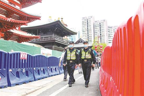 清明节期间,佛山警务人员在重点场所巡视维持秩序
