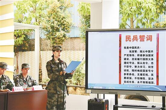 “我们一定要恪守誓言、履行义务、发扬传统、勤奋工作、锐意进取,为坑梓街道民兵建设贡献自己的一份力量!”动员会上,林思昭代表全体民兵发言。林思昭出生于1998年,从小在深圳长大。小时候,她留意到父亲对于军人有特别的崇拜之情,围坐在电视机前观看国庆大阅兵等庆典。于是,她希望,自己也能身着戎装,让父母为她骄傲。2016年她参军入伍,成为海军南海舰队一名女战士。
