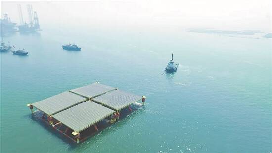 深圳中集集团制造的半潜式海上漂浮式光伏发电平台下水拖航