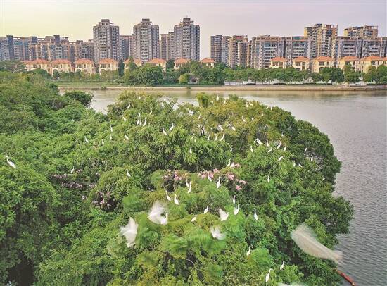 东莞生态环境持续改善,鹭鸟蹁跹已成常景 姚泽林 摄