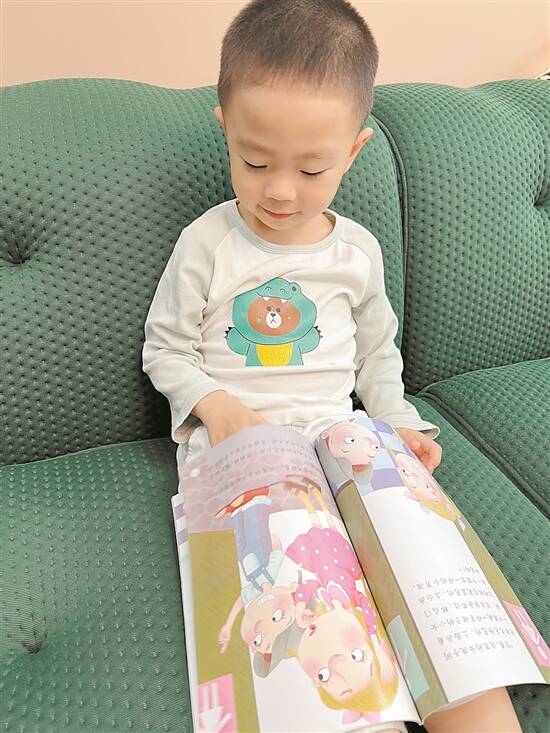家住东莞南城的王铕羲小朋友在家中阅读绘本 受访家长供图