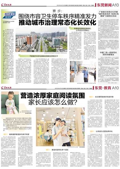 家庭阅读对培养孩子的阅读兴趣和阅读习惯起着至关重要的作用。眼下正值4月阅读月,笔者走访了解到,在东莞,家庭阅读已经成为许多家长和孩子共同的“功课”,家长注重营造良好的家庭阅读氛围,引导孩子建立科学的阅读观,点燃孩子的读书热情,让缕缕书香浸润心田。
