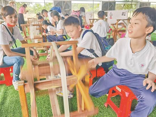 羊城晚报讯 记者张闻摄影报道:“参加完今天的研学,我们才知道我们家乡民乐有那么辉煌的蚕桑丝织产业发展历史,也知道民乐窦所发挥的产业功能与沉淀的历史文化。”近日,南海区西樵镇民乐小学上千名学生来到渔耕粤韵文化旅游园,参观蚕桑丝织文化产业研学之旅,一天的研学活动结束后,有学生在研学手册中写下这样的心得体会。