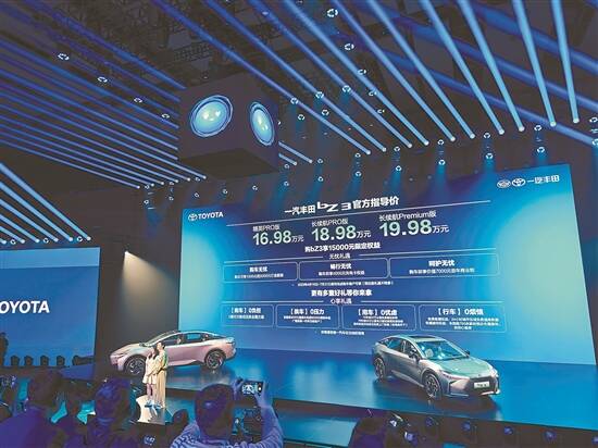 上海车展前夕,一汽丰田bZ3上市发布。bZ3共发布三个版本:精英PRO版 16.98万元、长续航PRO版 18.98万元、长续航Premium版 19.98万元。