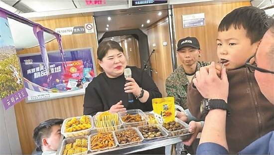 “淄博文旅推荐官”在烧烤专列上推荐淄博美食 图/淄博发布