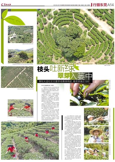 雾绕青山枝叶绿,茶农背篓采春芽。清明过后,东莞市厚街镇大迳社区的云雾茶场迎来了繁忙的采茶季。茶农们戴着斗笠,挎着竹箩,穿梭在茶垄间,双手翻飞,采摘新茶。