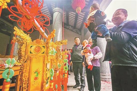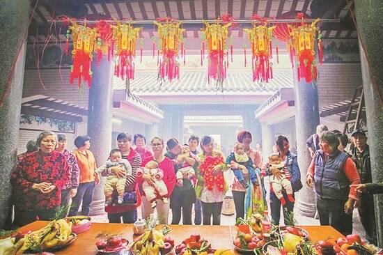 凌伟新说,在田心村,每年都会举行客家人传统的上灯仪式。原来,每年农历正月初十,钟姓村民都要在钟氏祠堂为新添男丁上灯。在客家话中,“丁”与“灯”同音,把生男孩称为“添丁”,谐音“添灯”。上灯仪式当天,添丁家庭先在家门前祭拜天地,摆好花灯,然后前往祠堂。仪式由村中德高望重的长者主持,各家首先点燃香烛,摆放好祭品,然后按出生前后顺序将带来的花灯升挂在祠堂里,并祭拜祖先,向祖宗汇报宗族里添丁的喜讯。如今,上灯既是当地民俗传承的重要载体,也成了促进亲戚朋友情感沟通的交流平台。2017年,鹤城客家上灯习俗入选鹤山市非物质文化遗产。