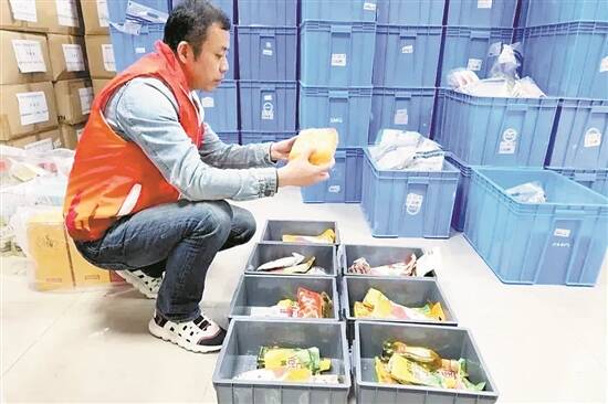 工作人员正在核验食品的生产日期等信息 深圳市民政局供图