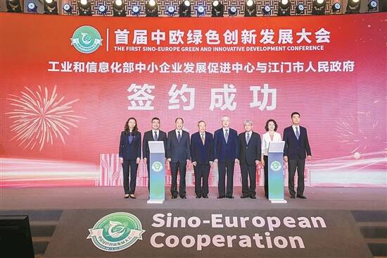 首届中欧绿色创新发展大会上,江门市领导与工信部代表签约 主办方供图