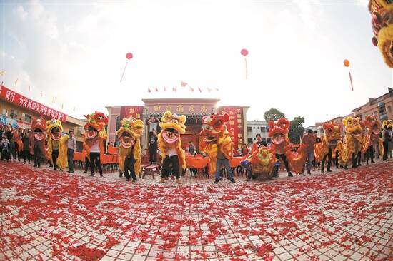据介绍,中心文化广场以游会文化为基础,打造游会文化展墙、“百年之约”游会舞狮景观小品,并建设了党建文化小品。经过升级改造,现在的中心文化广场不仅具备田头角村形象展示和文体聚会的功能,同时作为村子计划引进舞狮等专业团队的日常训练基地,弘扬游会文化。广场还出租给舞狮、舞龙、舞麟等专业队伍作为日常训练基地,既能呼应、弘扬本村游会文化,又能增加村子收入。此外,还结合文化活动中心设置新时代文明实践站、党群服务中心、妇女之家、青少年活动中心、舞狮训练基地、游园文化演出基地等功能空间。