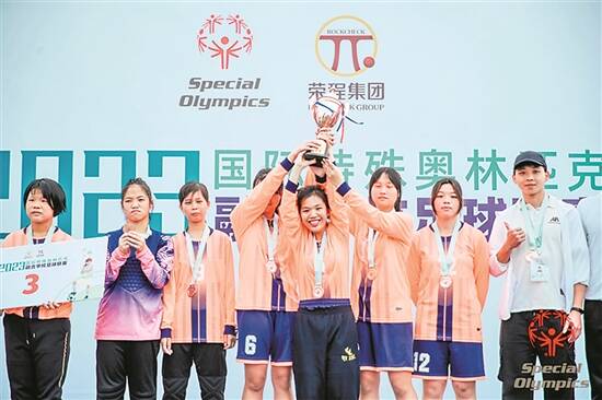 羊城晚报讯 记者杨苑莹、通讯员顺教宣摄影报道:近日,记者获悉,顺德融合队在2023国际特殊奥林匹克融合学校足球联赛中勇夺季军。