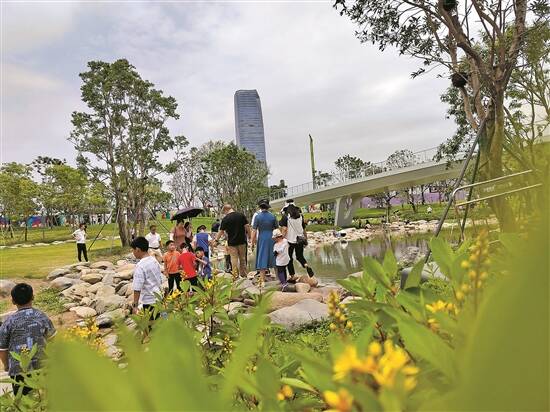“五一”期间,记者走访位于凤岗镇的南门山森林公园看到,园内人流涌动,有人在环水库绿道上散步、骑行,有人三三两两一起拍照留念,有人则一家老小全出动,郊游踏青、其乐融融。市民汪先生表示,东莞的森林公园还是比较好的,有山有水,风景比较好,趁着假期就带家里人过来玩一下,“这里绿道还有环境都比较好,小孩子也喜欢来这里玩”。