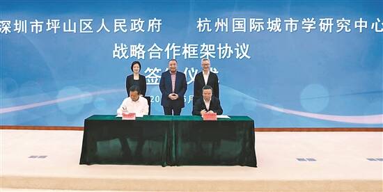 坪山是深圳东部中心城区,正聚焦打造“创新坪山、未来之城”的战略目标,努力打造生产、生活、生态“三生融合”的高品质城区。为进一步提升城区规划建设水平,5月9日,深圳市坪山区人民政府与杭州国际城市学研究中心(以下简称“杭州城研中心”)签署战略合作协议,按照“资源共享、优势互补、互利共赢、协同发展”的原则,在产业创新、城区治理、民生改善等经济社会各领域实现优势互补、强强联合。