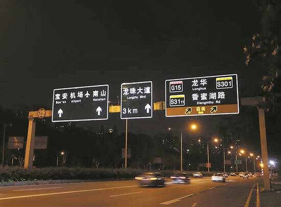 羊城晚报讯 记者郑明达报道:记者11日从深圳市交通运输局福田管理局获悉,为了打造更加安全畅通的路段通行环境,近日,交通部门在北环大道香梅路至福龙路试点应用了主动发光标志牌。