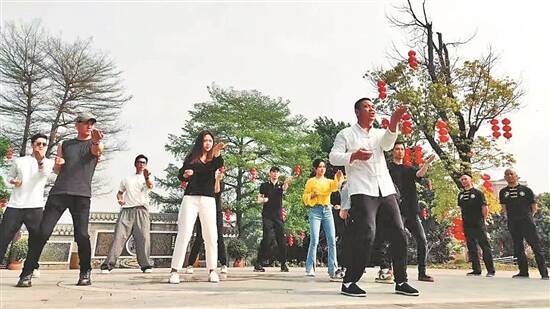 音乐剧《侠影·咏春》剧组前往鹤山采风并练习咏春拳 何雯意 摄