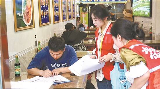 餐饮单位负责人在工作人员指导下签署垃圾分类承诺书