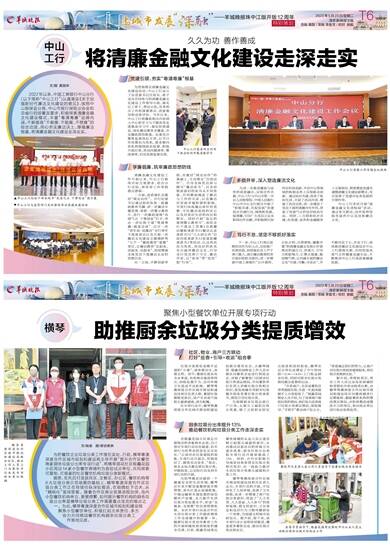 据悉,在先后打造居民区、文教区、办公区、餐饮机构等8大垃圾分类示范场景的基础上,横琴粤澳深度合作区垃圾分类工作正在持续往纵深处推进,在细微处下功夫,从“精细化”里找答案。随着合作区商业发展进程加快,岛内小型餐饮机构林立、更替频繁,如何提升餐饮机构的厨余垃圾分出率是横琴垃圾分类工作需要重点攻克的难点之一。为此,横琴粤澳深度合作区城市规划和建设局聚焦小型餐饮单位,积极扛起主体责任,多方协力共同推动餐饮机构厨余垃圾分类工作落地见效。