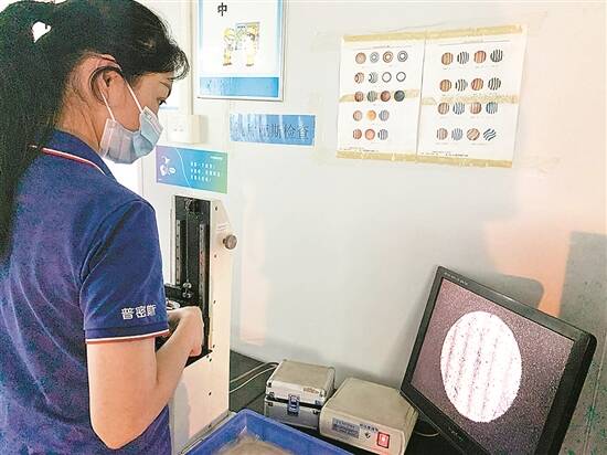 记者留意到,在光加生产车间内,工人们正在对镜片进行一一打磨、检测。一片合格的镜片要经过铣磨、精磨、研磨、检验、芯取等9道工序生产,再进入下一步的检测和组装。“我们的产品主要给智能制造进行检测的机器人设备提供系统和核心的器件。”普密斯相关技术负责人吴新元介绍,检测设备主要功能是保证产品的品质,而普密斯科技检测系统的精度达到了微米级别,为头发丝的百分之一。