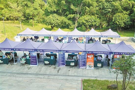 每逢星期四下午,东莞理工学院松山湖校区学生中心学思广场上人声鼎沸,一排排蓝色的帐篷下,前来应聘的毕业生与用人单位“一对一”交流。