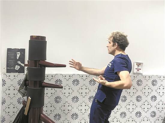 棕发碧眼,一副典型的西班牙人外貌,一点也不妨碍他在广式茶餐厅里熟练地用筷子夹着白切鸡;每天在有芒果树的院子里,练习广东佛山咏春拳和源自华佗“五禽戏”的大雁功。而这一切,起源于2005年一次来中国的旅游。