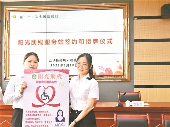 情系助残日,爱心暖人间。18日,梅州市五华县举办第三十三次全国助残日活动。活动现场,共有5家单位和企业签约授牌,设立阳光助残服务站网点。据了解,阳光助残服务站网点将为残疾人免费提供借用轮椅、拐杖等辅具;免费提供残疾预防、康复知识、权益保障等业务资料;为残疾人提供政策法规、康复知识咨询、转达需求、诉求等服务。随后,五华惠民村镇银行向阳光助残服务站捐赠50部爱心轮椅;梅州谷城医院推出特殊困难残疾人免费送医送药服务,捐赠常用药品120份。