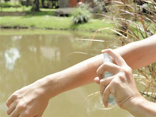 户外防蚊可在身体裸露部位涂上防蚊水、花露水等产品