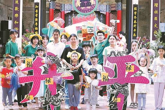 校社战略合作揭牌仪式后,首届升平社区文化艺术节亦正式启动。在升平社区康帅府里,大小朋友共绘亲子长卷;康帅府内粤曲音韵铿锵、余音绕梁;身穿香云纱的街坊翩翩起舞,雍容典雅;传统的大良鱼灯插上数字技术能说话……
