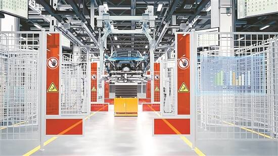 在里达工厂的总装车间内,基本就是机器在执行运作。在需要工人的岗位上,当车身送到面前,就会自动停步,向工人发出信号。工人手中的扳手也同步收到了无线信号指令,只要按照指令比如A或者B,对准需要装配零件的位置,扳手就会自动旋转额定的圈数,一圈不多一圈不少。工人想错都错不了,彻底杜绝了人为操作带来的随意性。究其原因,是因为工厂以“数据驱动”,用工业物联网(IIoT)连接起每一件产品、每一个流程和每一位员工,从而实现高质量、高效率的数字化生产。