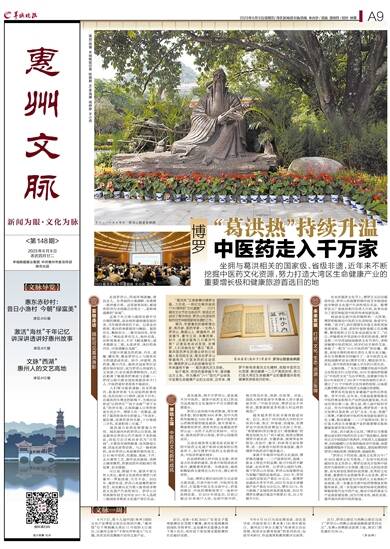 “葛洪热”正席卷惠州博罗全县。5月底,一场纪念葛洪诞辰1740周年的“文化盛宴”——2023葛洪文化节在当地召开,现场正式启动了葛洪传说、罗浮山风湿膏药制作技艺申报国家级非遗的工作。
