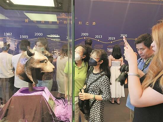 自5月18日东莞市博物馆“国宝归来——圆明园兽首暨海外回流文物特展”(下称“国宝归来特展”)开展以来,吸引了络绎不绝的观众慕名观展,至今仍热度不减,一票难求。当国宝顶流创新衔接东莞“地气”,互动与传播持续带动展览“人气”,东莞博物馆“火出圈”便有迹可循。记者近日走进东莞博物馆,探寻“国宝归来”频频“出圈”背后的故事。