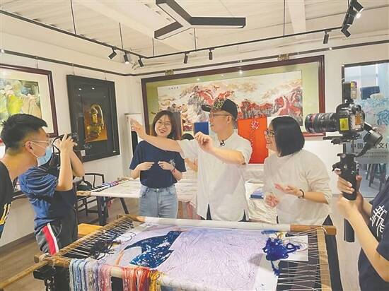 “岭南非遗”协同教学创新课程中,暨南大学谷虹带领学生开展“广绣”项目调研
