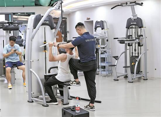 “健身主要是取悦自己。”郭跃文出生于千禧年,曾因为自己过瘦,他出门走在路上都感觉“抬不起头”。近两三年,他在健身房里看着自己的身材越来越好,也逐渐自信起来。“用下班后的时间锻炼一下,我觉得是对自己负责的表现。”郭跃文说,同事们看到他的变化,也学着他到健身房锻炼。
