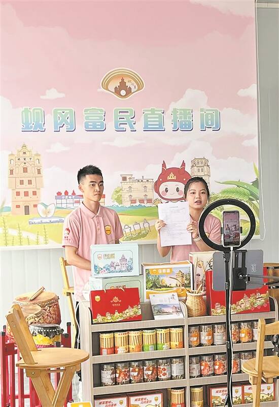 蚬冈富民直播间线上展示推广蚬冈优品等名优产品和侨心馆等特色旅游资源