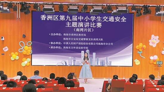 为提升校园师生交通安全意识,预防中小学生交通事故,根据珠海市公安局交警支队统一部署,6月5日下午,南湾交警大队联合香洲区教育局、中国人民财产保险股份有限公司珠海分公司,在珠海东方外语实验学校举办了“2023年香洲区中小学生交通安全主题演讲比赛——南湾片区初赛”。