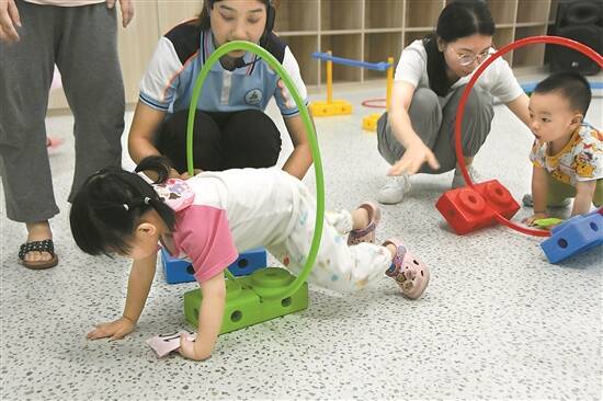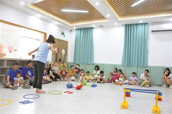 记者注意到,稚美托育室内地上铺有五彩软垫,四周布置有精致的绘本、泥塑、积木等玩具,亲子互动、游乐和科学育儿等幼儿照料功能区应有尽有。对于周边居民来说,“家门口托育”的服务模式减轻了家庭带娃的压力。“这里环境好,各类设施齐全,工作人员服务细心又周到,孩子和小伙伴一起玩得很开心。”带孩子参加亲子活动的张女士表示。