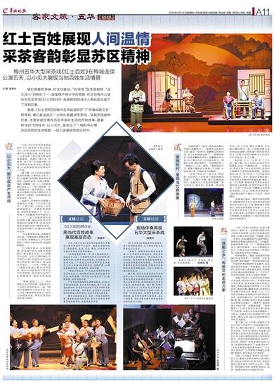 据了解,《红土百姓》是梅州五华县自今年3月获评“广东省戏剧之乡”称号后,精心推出的又一大型红色题材采茶戏。近年来,梅州五华县委、县政府重点扶持采茶戏创排打造大戏,切实加大重点题材和原创大戏的资金投入。坚持开展戏剧进校园、进社区、进企业、进景区、进革命老区活动,以及“非遗进校园演出”“戏曲进农村”“文化志愿者走基层惠民演出”“文化进万家活动”“五华提线木偶惠民云展播”等演出,每年演出400多场次。