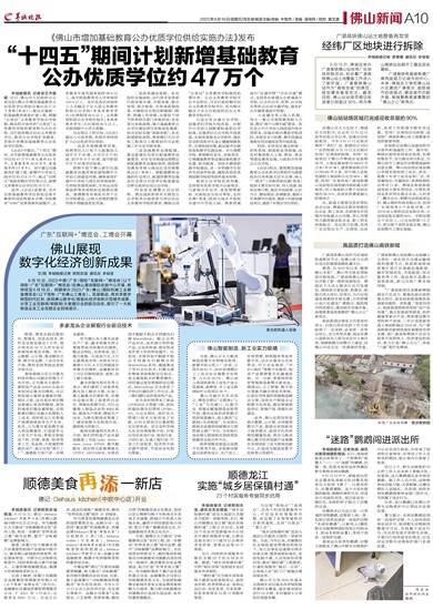 当前,佛山正大力推进制造业数字化智能化转型,新增市级示范工厂26家、示范车间82个,3849家规模以上工业企业实施数字化转型、占比达40.7%。佛山还入选国家新型工业化产业示范基地,新增省、市工业互联网标杆示范项目38个。