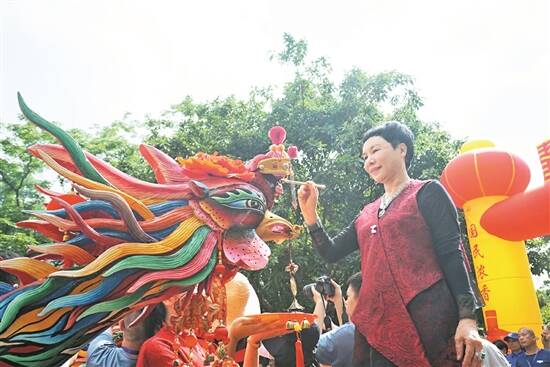 在舞龙、舞狮等一系列揭阳特色民俗文化表演之后,出席本次活动的嘉宾为12条龙舟披红和点睛,“一点眼睛,风调雨顺,国泰民安;二点天庭,吉星高照,鸿运当头;三点鼻子,和谐幸福,万家平安;四点口利,笑口常开,大吉大利;五点龙角,愿龙舟为我们带来健康、吉祥、如意。”