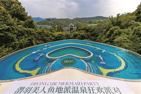 各种新颖的避暑方式和去处,频频刷爆社交网络平台。近日,龙门地派温泉森林度假区的山谷悬崖心形无边泳池,出现了震撼的一幕——近100条“美人鱼”跃入心形泳池之中。在无边森海的衬托以及夏日天光云影的映照之下,她们拖着五颜六色的“尾巴”畅游,颇具观赏性。据悉,该活动将计划挑战申报世界最大规模美人鱼泳池表演秀吉尼斯纪录。