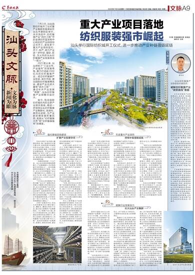 如今,包含国际纺织城在内的众多产业项目落地,将进一步加快汕头纺织服装产业集群化、高端化、规范化进程,为产业新时期发展积蓄后劲,实现从“纺织服装大市”到“纺织服装强市”的蝶变。