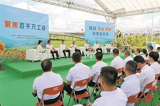 羊城晚报讯 记者秦小辉、通讯员凤宣摄影报道:近日,聚焦“百千万工程” 推动农业农村高质量发展——凤岗镇行进中的党课活动在该镇竹尾田村现代农业观光园举行。党员干部们以农业农村现代化为切入点,共同探讨“百千万工程”实施之策,积极构建经济强、环境美、社会稳、民生优、融合度高的镇村发展新格局。