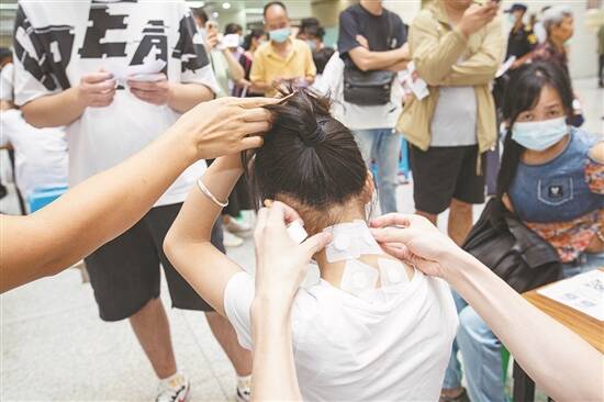 1日上午9时,广州中医药大学第一附属医院门诊大厅内,街坊们已经在排队等着贴天灸了,其中有不少是老人和小孩,也有不少上班族。一位带着两个孩子来贴天灸的爸爸接受记者采访时说,自己的大儿子有过敏性鼻炎,连着贴了三年有明显的改善;小儿子脾胃不好,年初“阳后”特别容易流鼻涕、咳嗽,于是也带着一起来贴天灸。他的经验是,三伏天灸能改变体质,但一定要坚持。