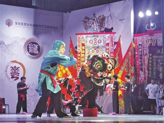 7月2日,深圳市宝安区西乡街道西乡会堂内锣鼓喧天、人潮如海,粤港澳大湾区狮王争霸赛(深圳宝安西乡站)比赛在这里擂鼓开赛,来自广州、深圳、佛山、清远、汕尾、中山、揭阳的10支优秀代表队“以狮会友”,施展精湛技艺,共同传递中华优秀传统文化的魅力。