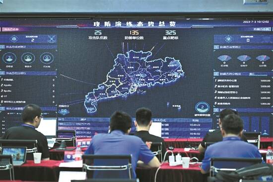 羊城晚报讯 记者李旭、通讯员许珺摄影报道:7月3日上午,“御海-2023”珠海·阳江·云浮数字政府网络安全联合攻防演练正式启动。