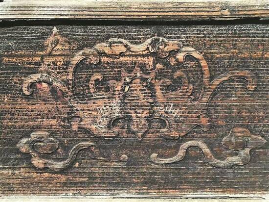 谭氏宗祠内,“五蝠来朝”木雕图案栩栩如生