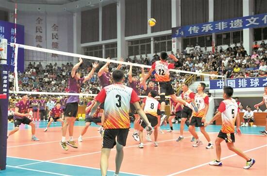 全国精英在排球场上隔网对决。6月份,2023年中国首届男子九人排球精英赛在台山上演。比赛吸引了全国多支队伍参加,多名台山籍球员也上场比赛,吸引了大批台山球迷的追捧。运动员球技精湛、顽强拼搏,热心球迷全情关注、锣鼓喧天,展示台山九人排球文化的深厚底蕴。