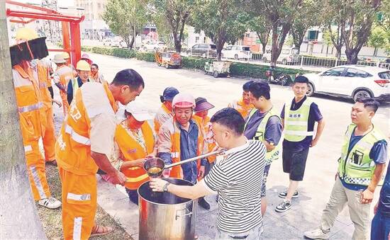 为方便在高温天气下工作的环卫工人就近免费休息、补水,东莞市清溪城管系统积极与临街店铺的店主商议,发起一场设置“爱心补水点”的全民“清凉”接力活动。截至目前,全镇共设置了60个环卫工人补水点,免费为环卫工人提供补水、休息便捷服务,部分药店补水点还提供消暑凉茶、糖水等。