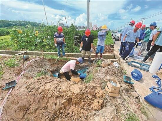 在巡察组的监督下,司前镇石步村、石乔村供水主管并网整改工程建设 李进发 摄