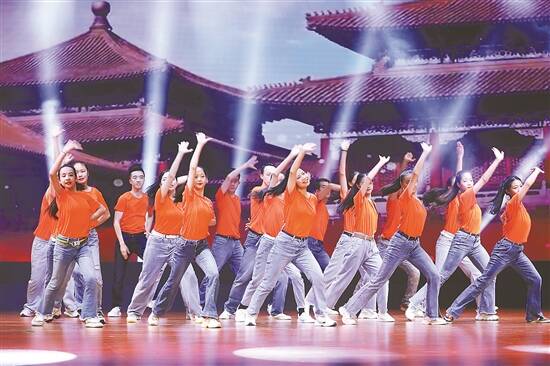 江门市文化馆文化志愿者表演队在展演活动中表演《筑梦未来》