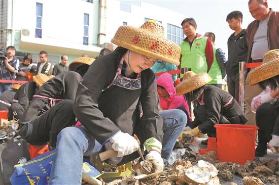 金蚝节沙井蚝民开蚝比赛场景 受访者供图